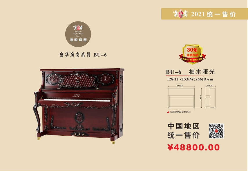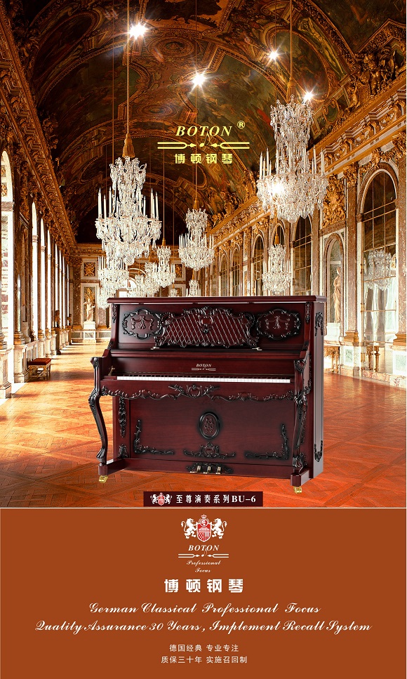 尊敬的用戶,熱烈歡迎您已成為BOTON(博頓)鋼琴用戶大家庭中的一員,祝賀您以睿智的目光選擇了我們的產品,我們將為您提供卓越的品質和一流的服務。BOTON鋼琴從在中國大陸注冊成立生產十五年以來,在各項技術指標和制作工藝上都嚴格按照德國鋼琴工藝標準生產制造,迄今為止已在生產和銷售方面有了長足的發展,特別是在產品質量上多項指標已遠遠超過中國樂器行業國家標準和同行水平。現已被作為上海音樂學院國際鋼琴大師班演奏用琴;西安音樂學院鋼琴系,新疆師范大學音樂學院,上海交響樂團、合唱團演奏用琴;美國奧柏林國際鋼琴大賽中國賽區指定用琴;上海國際書展專家指定演示用琴;上海浦東國際機場T2航站樓迎賓大廳形象展示指定用琴;廈門高崎國際機場迎賓大廳形象展示用情等。在銷售商和消費者心目中已經建立起了良好的品質形象和信譽,品牌效應也日見彰顯。為了酬謝廣大BOTON用戶的厚愛,確保BOTON鋼琴的恒久卓越,我們特聯合特約經銷商向BOTON用戶提供:1、電話定時回訪;2、上門跟蹤服務;3、特設咨詢和監督投訴專線電話;4、對產品品質的保障管理切實實行“質保30年實施召回制”。