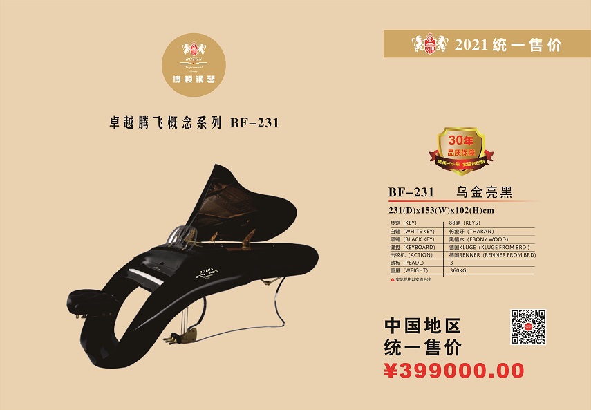 尊敬的用戶,熱烈歡迎您已成為BOTON(博頓)鋼琴用戶大家庭中的一員,祝賀您以睿智的目光選擇了我們的產品,我們將為您提供卓越的品質和一流的服務。BOTON鋼琴從在中國大陸注冊成立生產十五年以來,在各項技術指標和制作工藝上都嚴格按照德國鋼琴工藝標準生產制造,迄今為止已在生產和銷售方面有了長足的發展,特別是在產品質量上多項指標已遠遠超過中國樂器行業國家標準和同行水平。現已被作為上海音樂學院國際鋼琴大師班演奏用琴;西安音樂學院鋼琴系,新疆師范大學音樂學院,上海交響樂團、合唱團演奏用琴;美國奧柏林國際鋼琴大賽中國賽區指定用琴;上海國際書展專家指定演示用琴;上海浦東國際機場T2航站樓迎賓大廳形象展示指定用琴;廈門高崎國際機場迎賓大廳形象展示用情等。在銷售商和消費者心目中已經建立起了良好的品質形象和信譽,品牌效應也日見彰顯。為了酬謝廣大BOTON用戶的厚愛,確保BOTON鋼琴的恒久卓越,我們特聯合特約經銷商向BOTON用戶提供:1、電話定時回訪;2、上門跟蹤服務;3、特設咨詢和監督投訴專線電話;4、對產品品質的保障管理切實實行“質保30年實施召回制”。