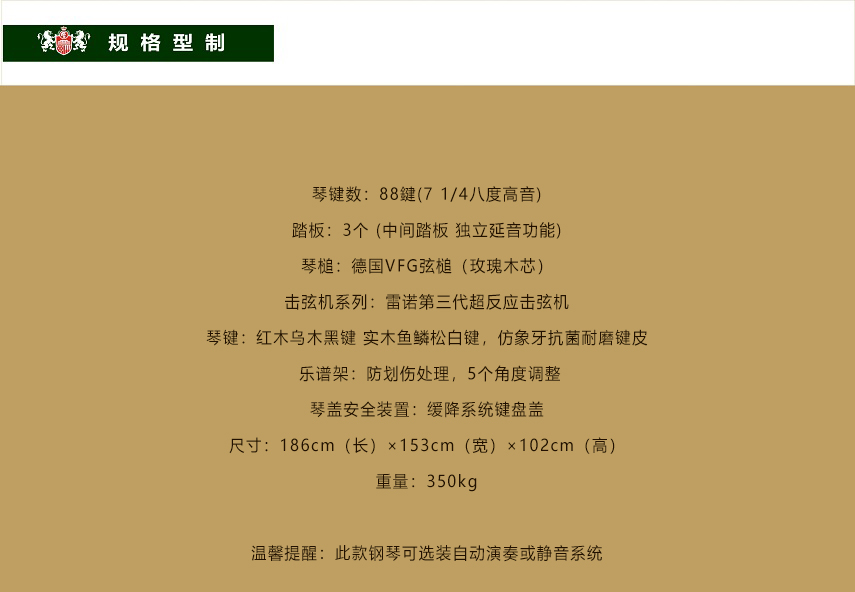 尊敬的用戶,熱烈歡迎您已成為勃拉姆斯 Brahms 鋼琴用戶大家庭中的一員,祝賀您以睿智的目光選擇了我們的產(chǎn)品,我們將為您提供卓越的品質(zhì)和一流的服務(wù)。Brahms 鋼琴從進(jìn)入中國大陸20年以來,在各項(xiàng)技術(shù)指標(biāo)和制作工藝上都嚴(yán)格按照德國鋼琴工藝標(biāo)準(zhǔn)生產(chǎn)制造,迄今為止已在生產(chǎn)和銷售方面有了長足的發(fā)展,特別是在產(chǎn)品質(zhì)量上多項(xiàng)指標(biāo)已遠(yuǎn)遠(yuǎn)超過中國樂器行業(yè)國家標(biāo)準(zhǔn)和同行水平。現(xiàn)已被作為上海音樂學(xué)院國際鋼琴大師班演奏用琴;美國奧柏林國際鋼琴大賽中國賽區(qū)指定用琴;上海國際書展專家指定演示用琴;上海浦東國際機(jī)場T2航站樓迎賓大廳形象展示指定用琴;廈門高崎國際機(jī)場迎賓大廳形象展示用情等。在銷售商和消費(fèi)者心目中已經(jīng)建立起了良好的品質(zhì)形象和信譽(yù),品牌效應(yīng)也日見彰顯。為了酬謝廣大Brahms 用戶的厚愛,確保Brahms 鋼琴的恒久卓越,我們特聯(lián)合特約經(jīng)銷商向 Brahms 用戶提供:1、電話定時(shí)回訪;2、上門跟蹤服務(wù);3、特設(shè)咨詢和監(jiān)督投訴專線電話;4、對(duì)產(chǎn)品品質(zhì)的保障管理切實(shí)實(shí)行 “質(zhì)保30年,實(shí)施召回制”。