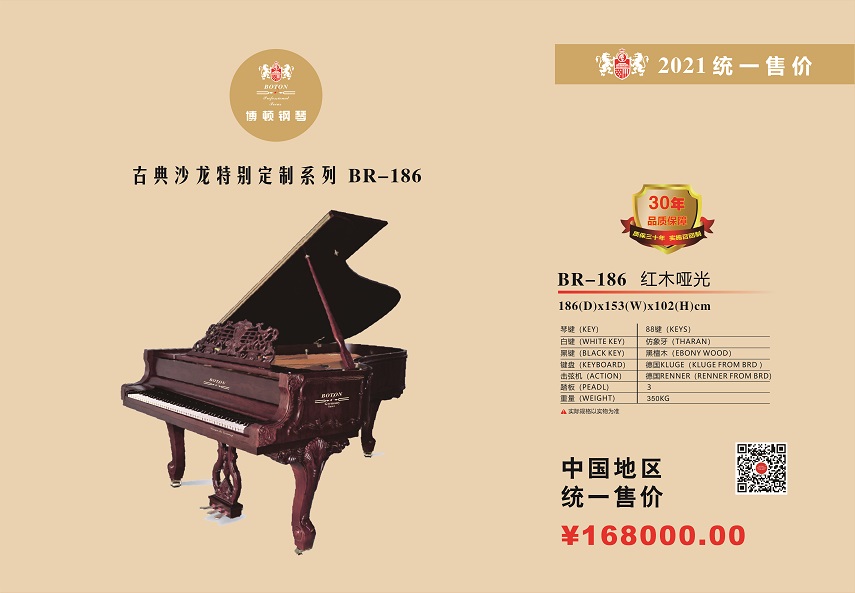 尊敬的用戶,熱烈歡迎您已成為BOTON(博頓)鋼琴用戶大家庭中的一員,祝賀您以睿智的目光選擇了我們的產(chǎn)品,我們將為您提供卓越的品質(zhì)和一流的服務(wù)。BOTON鋼琴從在中國大陸注冊成立生產(chǎn)十五年以來,在各項(xiàng)技術(shù)指標(biāo)和制作工藝上都嚴(yán)格按照德國鋼琴工藝標(biāo)準(zhǔn)生產(chǎn)制造,迄今為止已在生產(chǎn)和銷售方面有了長足的發(fā)展,特別是在產(chǎn)品質(zhì)量上多項(xiàng)指標(biāo)已遠(yuǎn)遠(yuǎn)超過中國樂器行業(yè)國家標(biāo)準(zhǔn)和同行水平。現(xiàn)已被作為上海音樂學(xué)院國際鋼琴大師班演奏用琴;西安音樂學(xué)院鋼琴系,新疆師范大學(xué)音樂學(xué)院,上海交響樂團(tuán)、合唱團(tuán)演奏用琴;美國奧柏林國際鋼琴大賽中國賽區(qū)指定用琴;上海國際書展專家指定演示用琴;上海浦東國際機(jī)場T2航站樓迎賓大廳形象展示指定用琴;廈門高崎國際機(jī)場迎賓大廳形象展示用情等。在銷售商和消費(fèi)者心目中已經(jīng)建立起了良好的品質(zhì)形象和信譽(yù),品牌效應(yīng)也日見彰顯。為了酬謝廣大BOTON用戶的厚愛,確保BOTON鋼琴的恒久卓越,我們特聯(lián)合特約經(jīng)銷商向BOTON用戶提供:1、電話定時(shí)回訪;2、上門跟蹤服務(wù);3、特設(shè)咨詢和監(jiān)督投訴專線電話;4、對(duì)產(chǎn)品品質(zhì)的保障管理切實(shí)實(shí)行“質(zhì)保30年實(shí)施召回制”。