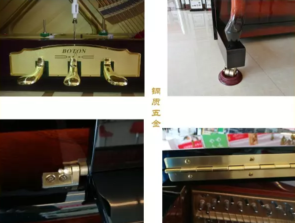 鋼琴是貴重耐用的大型樂器,BOTON(博頓)鋼琴均采用銅質(zhì)五金電鍍,包括腳輪、鉸鏈、支撐桿、踏板、腳檔護(hù)板,液壓等,精密鑄造,恒久可靠。  為了防止在不經(jīng)意間鍵盤蓋突然倒下造成手部受傷或漆面碰撞,.BOTON(博頓)鋼琴精選通過10萬次疲勞測(cè)試的專業(yè)液壓緩降裝置。確保您在任何時(shí)候都可以安心、安全演奏不出意外。