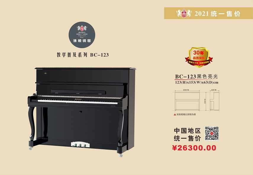 BOTON(博頓)鋼琴采用不等厚非對稱曲面分布,加強低音的共鳴,各音區(qū)音色連貫、統(tǒng)一和飽滿。