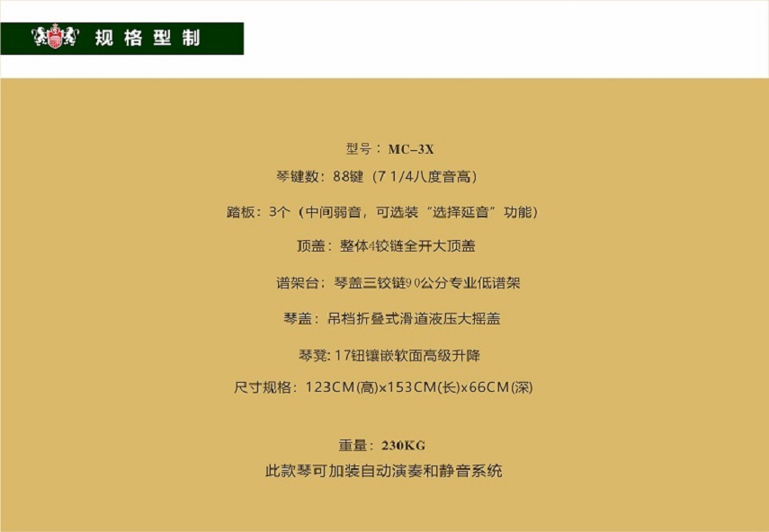 為了使您能夠更加詳盡全面了解鋼琴的性能、特征和使用、保養(yǎng)等注意事項,也了解您和我們之間就有關(guān)產(chǎn)品責(zé)任和售后服務(wù)方面權(quán)利、義務(wù)產(chǎn)生和消除的約定,請您在使用前務(wù)必認(rèn)真研讀本產(chǎn)品使用維護(hù)說明書和質(zhì)量擔(dān)保承諾。任何不當(dāng)?shù)氖褂煤筒僮鞫伎赡苡绊戜撉偈褂脡勖l(fā)音、音量、音色、和彈奏指觸感覺;同時也將使你喪失提出索賠的權(quán)利。